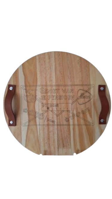tekst of afbeelding kan in overleg naar wens gemaakt worden. De borrelplank met de gaatjes erin komt een touw als handvat in. Geef in het veld opmerkingen bij betalen aan welk lettertype in wilt hebben.