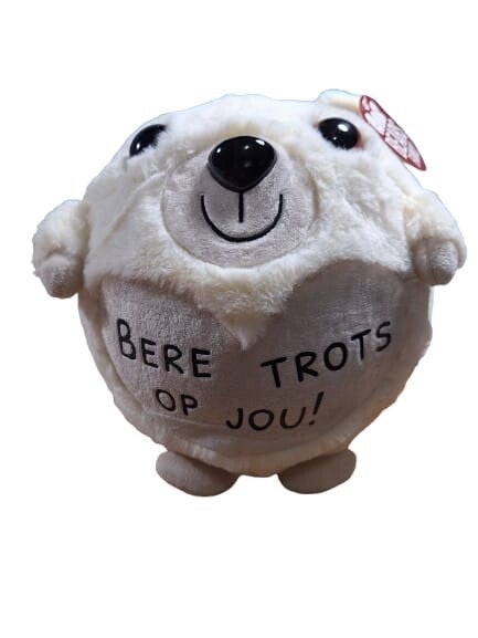 Deze beer kan in een brievenbus doosje verzonden worden, in de beer zit een bal die met bijgeleverd ventieltje opgepomt kan worden
