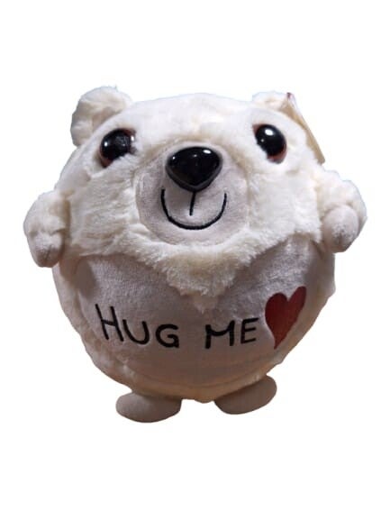 Deze beer kan in een brievenbus doosje verzonden worden, in de beer zit een bal die met bijgeleverd ventieltje opgepomt kan worden